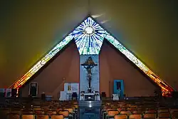 Głównym materiałem wspierającym konstrukcję budynku jest wzmocniony beton. Układ z zewnątrz jest piramidalny, z trójkątnymi otworami po czterech stronach, co sprawia wrażenie falującego budynku, który ma wyglądać jak namiot[2]. Fasadę charakteryzuje posąg Jezusa na krucyfiksie, który pierwotnie był przeznaczony do wnętrza[2]. Główną cechą wnętrza, obok innych ozdób sakralnych jest prezbiterium zaprojektowane przez Micallefa w 1987. Witraże zaprojektował artysta Alfred Camilleri. Kościół prowadzony jest przez ojców karmelitów i jest aktywny[2].