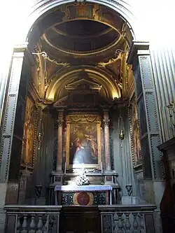 Obecne wyposażenie prezbiterium pochodzi z początku XIX wieku. Obraz ołtarza głównego przedstawia Ukrzyżowanie, jest to dzieło autorstwa Girolamo Siciolante da Sermoneta[1].