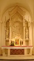 - Droga krzyżowa składająca się z 14 stacji, wykonana w latach 1930–1931. Są to realistyczne gipsowe płaskorzeźby pokryte polichromią i złoceniami