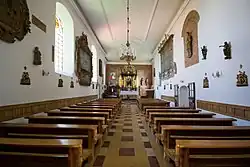 Wystrój i wyposażenie świątyni jest barokowe i późnobarokowe. Ołtarz główny pochodzi z około 1730 r. Niegdyś połączony był z amboną – jej rzeźbione fragmenty wykonano w latach 1680-1687 w warsztacie Jana Pfeffera.