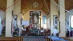 Jest to budowla murowana, jednonawowa, nakryta sufitem z boazerii, na dachu znajduje się wieżyczka z sygnaturką. W prezbiterium znajduje się duży obraz Jezusa Miłosiernego, na ścianach bocznych znajdują się obrazy: Matki Bożej Ostrobramskiej i św. Faustyny Kowalskiej (namalowane przez Józefa Mamczura z Lubaczowa). Do wyposażenia świątyni należą: ołtarz, ambona, chrzcielnica, 4 lichtarze, kredencja, sedilia wykonane z drewna dębowego, 4 chorągwie, fioletowe sztandary, konfesjonał, 4 klęczniki, ławki, monstrancja, kielichy, organy[1].