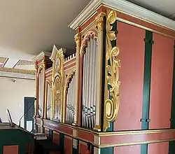 Chór murowany, lekko wybrzuszony w stronę prezbiterium. Balustrada pełna, wykonana z drewna. Na chórze organy z malowaną datą AD 1937. Wejście na chór murowanymi schodami we wnętrzu wschodniej wieży[6].