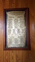 Tablica z nazwiskami osób i instytucji, które wsparły remont kościoła w 2017–2018