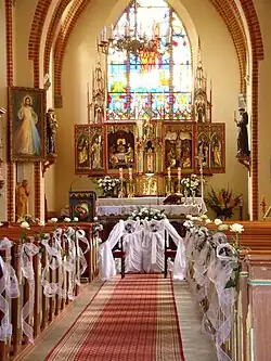 Jest to budowla murowana z cegły, w stylu neogotyckim, orientowana. Kościół jest halowy, trójnawowy, z wyodrębnionym prosto zamkniętym dwuprzęsłowym prezbiterium. Wieża od strony zachodniej. Sklepienie jest krzyżowo-żebrowe, wystrój wnętrza i wyposażenie kościoła jest neogotyckie. W prezbiterium znajduje się ołtarz soborowy.