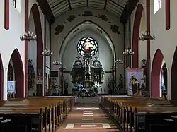 Świątynia została wybudowana w latach 1913–1915 według projektu architekta Ludwiga Schneidera, konsekrowana w 1915 roku. Budowla zawiera elementy historyzmu: neoromańskie i neogotyckie. Jest to świątynia jednonawowa z wieżą[3].