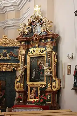 Odsłaniany obraz przedstawia rozmnożenie chleba przez Jezusa. Pod nim znajduje się obraz Świętego Kajetana, który był założycielem zakonu teatynów. W górnej części ołtarza wizerunek proroka Eliasza i aniołów[5].