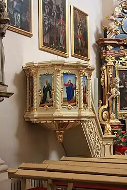 Organy o rokokowym prospekcie powstały w latach 1847–1848. Ich twórca nie jest znany. Brak jest informacji o remontach instrumentu, za to w 2010 podczas remontu generalnego świątyni zostały odmalowane. Prospekt ma wygląd klasyczny, pięcioosiowy. Traktura rejestrów jest mechaniczna. Posiadają 10 głosów[4][5].
