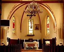 Jest to świątynia poewangelicka wybudowana na miejscu dawnego zespołu klasztornego dominikanów istniejącego w latach 1338–1839. Została zbudowana w 1909 roku w stylu neogotyckim, poświęcona w dniu 19 października 1910 roku[2]. Poświęcona jako kościół katolicki w 1945, konsekrowana w dniu 10 stycznia 2010 roku przez abp Henryka Muszyńskiego[3]. Posiada wydzielone ośmioboczne prezbiterium, prostokątną nawę z balkonami i wieżę od zachodu. Do wyposażenia należą m.in. barokowy obraz Matki Bożej z Dzieciątkiem – Królowej Polski (pamiątka po klasztorze dominikanów) znajdujący się w prawym ołtarzu bocznym, barokowy krzyż ołtarzowy, stacje Męki Pańskiej wykonane przez miejscowego artystę plastyka Edmunda Kapłońskiego[4]. W lewym bocznym ołtarzu, jest umieszczona figura św. Dominika, pochodząca zapewne z dawnego klasztoru. Po czasach ewangelickich zachował się wystrój wnętrza, empory, organy oraz witraże[5]. Od 13 czerwca 2004 roku kościół posiada relikwie św. Joanny Beretty Molli, jako czwarta świątynia w Polsce[6].