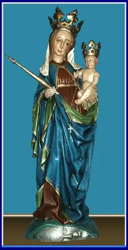 Z dawnej świątyni została zachowana rzeźba Matki Bożej z Dzieciątkiem, wykonana w stylu gotyckim w XIV wieku, poza tym figura Chrystusa zmartwychwstałego XVI w. [obecnie w muzeum diecezjalnym], chrzcielnica i ambona z bogatą dekoracją, wykonane przez artystę Chodzińskiego podczas odbudowy świątyni[2].