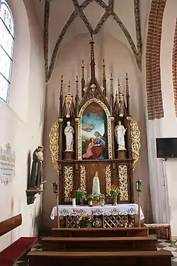 Przy nawie od strony północnej znajduje się kaplica św. Anny dobudowana w 1515 roku. W ołtarzu w kaplicy (a właściwie nawie bocznej) predella ze sceną figuralną, malowana około 1520 roku. W nawie bocznej kościoła znajduje się również ołtarz neogotycki[2][3].