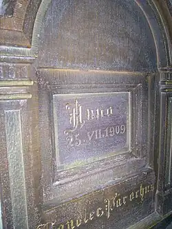3 października tego roku dokonano uroczystego wciągnięcia krzyża na wieżę. Natomiast w listopadzie budynek został w całości pokryty dachem. 13 lutego 1910 r. dokonano uroczystego poświęcenia dzwonów. Największy dzwon na cześć zmarłej patronki został nazwany Wanda, średni na cześć budowniczego kościoła, ks. Kandlera – Johannes von Nepomuck, a najmniejszy na cześć hrabianki Sary będącej dobrodziejką parafii – Sara. Natomiast sygnaturka pochodziła ze starego kościoła i została umieszczona w małej wieżyczce. 4 września 1910 r. odbyło się uroczyste poświęcenie kościoła[2]. W kronice parafialnej tak zostało opisane to wydarzenie[4]: