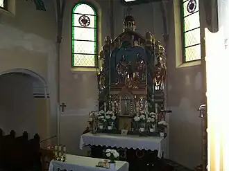 W latach 1913–1914 za sprawą hrabiego Edgara Henckel von Donnersmarck wybudowano nowy kościół na miejsce starego przypałacowego. W czasie I wojny światowej ks. Kandler został zmuszony do oddania na cele wojenne dwa największe kościelne dzwony. 23 października 1922 r. nowy przypałacowy kościółek został poświęcony przez opata z St. Ettal. 30 marca 1924 r. ks. Kandler dokonał poświęcenia dwóch nowych dzwonów, odlanych w odlewni dzwonów „Schilling”[5]. Nowe dzwony zostały odlane ze stali, a nie z brązu, aby nie można było ich znów oddać na cele wojenne. W okresie od lipca 1926 r. do maja 1927 r. przeprowadzone zostało pierwsze malowanie kościoła, które nadzorował artysta malarz Klink z Babic. 1 kwietnia 1928 r. nowym patronem kościoła został W 1929 r. plebania oraz kościół zostały objęte elektryfikacją, która została w całości sfinansowana przez hrabiego Hansa Henckel von Donnersmarck. Od 1 grudnia 1938 r. staraniem ks. Gutsfelda kościół zyskał instalację grzewczą[6].