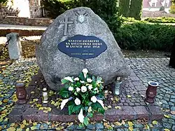 Przy kościele stoi pomnik z 2010 w formie głazu z tablicą pamiątkową o treści: Naszym zmarłym na nieludzkiej ziemi w latach 1940-1946[5].