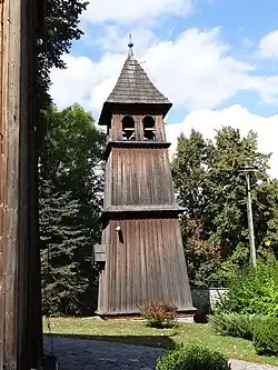 Obok kościoła dzwonnica z 1968 zbudowana na planie kwadratu, odeskowana i pokryta gontem podczas generalnego remontu świątyni przeprowadzonego w latach 90. XX w. Znajdują się tam trzy dzwony, w tym zabytkowy Maria z 1535.