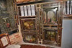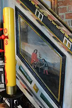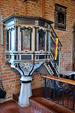W czasie renowacji kościoła w 1825 roku zadbano o zachowanie starego wyposażenia. Jeszcze na początku XX wieku można było tam zobaczyć stare obrazy i sprzęt. Stalle, kazalnica i część południowej empory były udekorowane bardzo osobliwymi obrazami, które świadczą o dobrej woli i fantazji niż o dobrej technice. Obrazy przy zakrystii traktują o „grzechu i przebaczeniu” w sposób częściowo drastyczny, ale bardzo poglądowy. Do dziś przetrwała jedynie część tego wyposażenia.