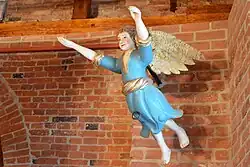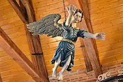 - anioł chrzcielny, drewniany, polichromowany zawieszany nad chrzcielnicą,