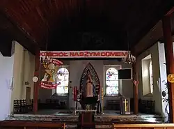 Z dawnego wyposażenia zachowały się: chrzcielnica i chór muzyczny z XVIII wieku. Dawniej w kościele mieściły się dwa renesansowe ołtarze, ale zostały rozebrane na początku lat. 90. XX wieku z powodu ich złego stanu technicznego[3].