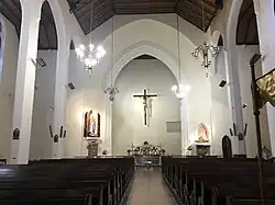 Ze współczesnego wyposażenia wyróżnia się wielki krucyfiks w prezbiterium oraz figura Niepokalanego Serca i stacje Drogi Krzyżowej dłuta Zofii Trzcińskiej-Kamińskiej. 30-głosowe organy elektroniczne zostały zakupione w Niemczech w 1969 r.