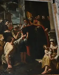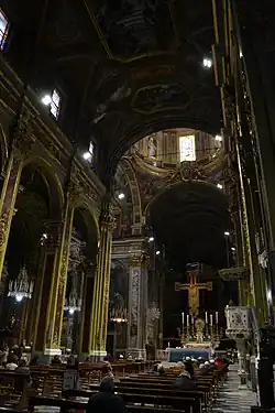 Obraz w ołtarzu kaplicy, dedykowanej augustiańskiemu biskupowi św. Tomaszowi z Villanuevy (Cappella di San Tommaso da Villanova), Święty Tomasz składający jałmużny, pochodzi z pierwotnego kościoła. Namalował go Domenico Fiasella. Sklepieniu zdobi fresk Św. Augustyn w chwale Giovanniego Quinzia[11].