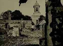 W sierpniu 1944 r., w wyniku walk prowadzonych w ramach II wojny światowej, spłonął dach i organy, uszkodzone zostało sklepienie, a wieżę zniszczył pocisk[6][3]. Po zakończeniu konfliktu, w latach 1946–1947, kościół odbudowano i odrestaurowano[2][6].
