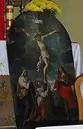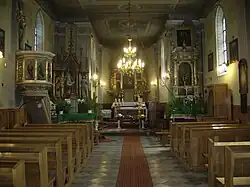 - ołtarz główny i boczny południowy – barokowe z około 1614 roku, pochodzą z wcześniejszej świątyni[2][4];