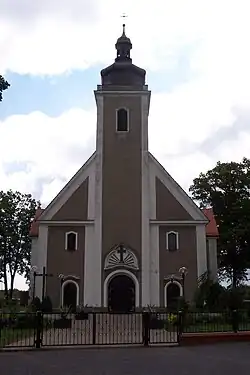 Murowany kościół został wybudowany w stylu neobarokowym, w latach 1921-1923. Został konsekrowany 12 sierpnia 1933 r. przez ks. kard. A. Bertrama[1][2].