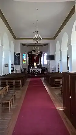 Budynek jest trójnawowy, z zakrystią i niewielką wieżyczką nad nawą. Ołtarz główny z obrazem św. Antoniego z Padwy i figurą Chrystusa na Krzyżu powstał w 1952. Inne elementy wyposażenia świątyni są starsze - z XVIII w. pochodzą stacje Drogi Krzyżowej, monstrancja, na chórze znajdują się organy pochodzenia unickiego[1]. Zabytkowymi elementami znajdującymi się w świątyni z okresu, gdy funkcjonowała ona jako cerkiew są także chrzcielnica oraz żyrandol z XVIII/XIX wieku.
