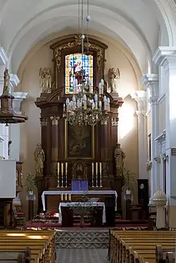Jest to świątynia wzniesiona w latach 1805-1806. Do jej budowy użyto cegły pochodzącej z rozbiórki zamku. Była ona zadośćuczynieniem rządu pruskiego za zabranie parafii we wsi Linin.