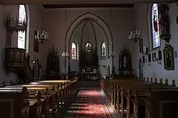 Świątynia została wzniesiona w stylu neogotyckim i zaprojektowana przez architekta Klopsha z Gdańska. Kościół jest usytuowany na linii północ - południe, ma 28 metrów długości, 13 metrów szerokości i 10 metrów wysokości od posadzki do stropu. Posiada czworokątną wieżę o wysokości 26 metrów. W ołtarzu głównym można zobaczyć obraz Przemienienia Pańskiego, namalowany w 1872 roku, a także figury świętego Andrzeja i świętego Wojciecha[2].