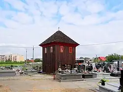 Świątynia położona jest na cmentarzu grzebalnym. Wybudowano ją w 1753 roku. Dawniej nosiła wezwanie św. Wawrzyńca. Jest to budowla drewniana wzniesiona na planie prostokąta, posiadająca konstrukcję zrębową, oszalowana. Wewnątrz znajdują się trzy ołtarze w stylu rokokowym: główny, ozdobiony obrazami z przedstawieniami Ukrzyżowania i Przemienienia oraz boczne: jeden posiadający obrazy przedstawiające św. Wawrzyńca i św. Katarzynę Aleksandryjską, a drugi posiadający obrazy z postaciami św. Barbary i św. Urszuli.[2].
