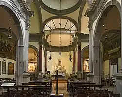 Ołtarz główny: składa się z prostego stołu z marmurowym frontem. Za ołtarzem głównym znajduje się kolorowa i złocona sztukateria Madonna z Dzieciątkiem, dzieło szkoły toskańskiej (XV wiek)[5].