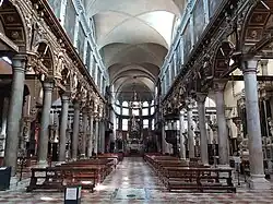 Kościół jest przykładem gotyckiej trzynawowej bazyliki. Nawę główną od bocznych oddzielają dwa rzędy po dwanaście kolumn, być może nawiązujących symbolicznie do liczby plemion Izraela i apostołów[3].