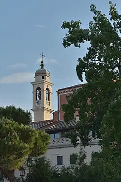 Do kościoła przylega wysoka na 37 m kampanila z dzwonami uruchamianymi elektromechanicznie. Wykonana według planów Longheny została zwieńczona niewielką, cebulastą kopułą, osadzoną na ośmiokątnym bębnie[2].