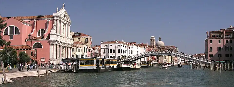 W 1633 roku karmelici bosi osiedlili się w Wenecji. Około dwadzieścia lat później Senat miasta wyraził zgodę na budowę przez nich kościoła i klasztoru. Wykonanie projektu powierzono w 1646 roku Baldassare Longhenie, architektowi kościoła Santa Maria della Salute, położonego na drugim końcu Canal Grande)[2]. Lokalizację wyznaczono w dzielnicy Cannaregio, nad Canal Grande, w pobliżu kościoła i klasztoru Santa Lucia; w tym celu w 1649 roku wykupiono kilka domów i ogrodów warzywnych ciągnących się do kanału. Była to wówczas peryferyjna część miasta, w której już były obecne zakony. Kościół został zbudowany w latach 1660–1680, przy wsparciu finansowym Girolamo Cavazzy[2] i konsekrowany w październiku 1705 roku, chociaż jego dekoracja nie była jeszcze ukończona; otrzymał wezwanie Najświętszej Maryi Panny z Nazaretu, patronki karmelitów bosych, W 1847 roku rozpoczęto budowę mostu, który miał umożliwić szybkie dotarcie do Starego Miasta. Aby zrobić miejsce dla stacji kolejowej, stopniowo rozbierano kościoły i klasztory zakonne zakonów, zwłaszcza żeńskich, w tym Santa Lucia. W 1858 roku w pobliżu nowego kościoła karmelitów bosych wzniesiono żeliwny most nad Canal Grande, znany dziś jako Ponte degli Scalzi[3].