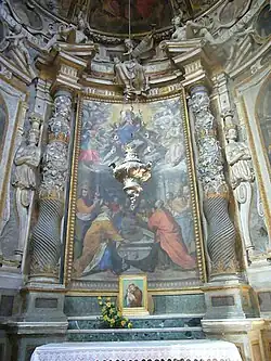 Ściany zdobią freski takich włoskich malarzy jak: Livio Agresti, Giovanni Battista Lombardelli, Paris Nogari, Gregorio Guglielmi. Wśród obrazów: Nawiedzenie św Elżbiety Marco Pino z 1545, Nawrócenie św. Pawła Francesco Ruviale, Zesłanie Ducha Świętego Jacopo Zucchi z 1588[3].