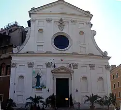 Fasada kościoła ma dwie kondygnacje. Na pierwszej umieszczono sześć pilastrów kompozytowych, podtrzymujących belkowanie z pustym fryzem. W każdej z czterech stref bocznych między pilastrami znajduje się pusta nisza z konchą w kształcie muszli. Drugie piętro ma cztery pilastry w tym samym stylu co dolne, podtrzymują one kolejne belkowanie zwieńczone trójkątnym frontonem. W strefach bocznych znajdują się nisze takie, jak w piętrze dolnym. Strefa centralna jest zdominowana przez ogromny oculus, nad którym znajduje się ozdobny herb papieża Sykstusa V[2].