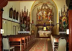We wnętrzu zachowały się elementy wyposażenia powstałe w czasie budowy kościoła[2].
