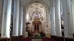 Ołtarz główny w stylu barokowym pochodzi z początku XVIII wieku i został przeniesiony z poreformackiego kościoła św. Katarzyny w Zamościu. Po zniszczeniach z 1939 roku został uzupełniony.