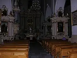 - z lewej w nawie ołtarz z obrazem ze św. Rocha z XIX wieku oraz bł. Kingi w zwieńczeniu z XVIII wieku,