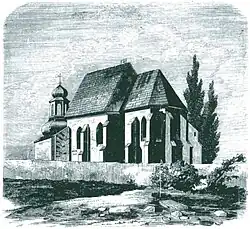 Mała murowana świątynia została wzniesiona w XIV wieku. W 1794 roku została zniszczona przez pożar. Kościół został odbudowany i wyremontowany, natomiast w 1877 roku poddano go rozbudowie. Ostatni raz świątynia została rozbudowana w latach 1960–1970. W 2006 roku prezbiterium kościoła zostały poddane renowacji. Świątynia otrzymała również nowe pokrycie dachu. Do wyposażenia kościoła należą m.in. obraz Matki Bożej Bolesnej namalowany w XVII wieku i kamienna rzeźba Madonny z Dzieciątkiem wykonana w XIV wieku[2].