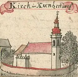 Kościół przebudowany w stylu barokowym[3]. Wewnątrz znajduje się rokokowe wyposażenie i kamienna płyta nagrobna Adama Wachtla (zm. 1589)[5] autorstwa Mistrza Nagrobka Dluhomila[6]. Kościół otacza mur z kamieni polnych, do którego w XVIII wieku dobudowano rokokową kaplicę[7]. Wieża kościoła została wzniesiona na planie kwadratu[4]. Usytuowany jest na niewielkim wzniesieniu[8]. W pobliżu kościoła znajduje się cmentarz.