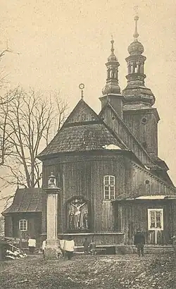Drewniany kościół został zbudowany w 1778 na bazie wcześniejszych obiektów sakralnych, w tym kościoła z XV wieku[2]. Od tego czasu był wielokrotnie przebudowywany i remontowany. Ostatni większy remont miał miejsce w 2008 roku, kiedy to pokryto dach blachą miedzianą.
