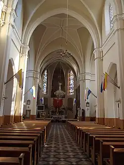 Kościół w stylu neogotyckim powstała w latach 1906–1912 według projektu Feliksa Nowickiego[2]. W świątyni zachowało się starsze wyposażenie pochodzące ze starego kościoła, który spłonął. Kościół bazylikowy z nawą główną, transeptem i prezbiterium jednakowej wysokości 14,9 m., tworzącymi razem formę krzyża. Korpus trzynawowy, trzyprzęsłowy, prezbiterium flankowane od zachodu zakrystią, od wschodu kaplicą. Kościół z cegły na zaprawie cementowo-wapiennej, z kamiennym cokołem, tynkowany wewnątrz.