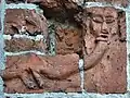 Postać w tunice z uniesionymi w górę rękami, w lewej dłoni trzymająca niemożliwy do rozpoznania przedmiot. Najprawdopodobniej postać ta jest personifikacją jakiejś wady lub grzesznego zachowania. |