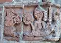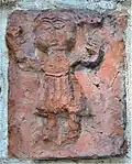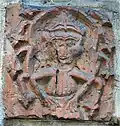Postać o niecodziennym wyglądzie: z sześcioma wydłużonymi elementami na głowie i dwoma "gałęziami" wyrastającymi z łokci. Jest to najprawdopodobniej przedstawienie gorgony - mitologicznego stworzenia mającego węże zamiast włosów oraz skrzydła u ramion. |
