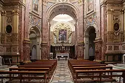 W kościele znajdują się spektakularne malowidła wewnątrz kopuły oraz na chórze. Obraz tytularny wykonany został przez Stefano Erardiego[2]. Wnętrze kościoła, który ma cztery kaplice i siedem ołtarzy, ozdobione jest barokowymi rzeźbami i obrazami, wykonanymi przez wybitnych artystów, m.in. Mattia Pretiego, Michele Bellantiego i Giuseppe Calì. Do ważnych dzieł rzeźbiarskich należą bogato rzeźbiona i pozłacana drewniana rama wokół tytularnego obrazu, autorstwa Pietro Paolo Troisiego, oraz procesyjny posąg Matki Boskiej z Góry Karmel wykonany przez maltańskiego rzeźbiarza Andreę Imbrolla[3].