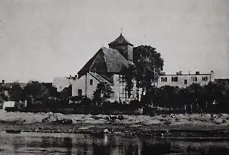 W pobliżu kościoła stoi murowana plebania w stylu neoromańskim z połowy XIX wieku. Wzniesiono ją na miejscu pierwotnej, która spłonęła w 1817[4].