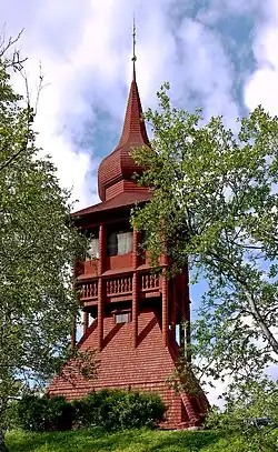 Wolnostojąca, drewniana dzwonnica powstała między 1906 a 1907, jeszcze przed wybudowaniem kościoła. Została poświęcona w Wielki Piątek 1907. Gustaf Wickman przedstawił wiele projektów dzwonnicy zanim wybrał ostateczny do realizacji. Dzwonnica ma wysokość 35 m i składa się z 3 kondygnacji: bazy, części mieszczącej dzwony i wieżyczki w kształcie kopuły.