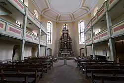 W 1898 roku przeprowadzono remont wnętrza kościoła według projektu budowniczego Karla Emila Scherza. Powiększono część dla wiernych wznosząc dwa piętra empor, stare organy zastąpiono nowym instrumentem firmy Jehmlich, w oknach prezbiterium wstawiono witraże wykonane przez Georga Schwenka. Rzeźbiarz Robert Ockelmann wykonał figury apostołów Jana i Pawła, które umieszczono po bokach ołtarza. Wyremontowany kościół poświęcono 12 marca 1899 r.