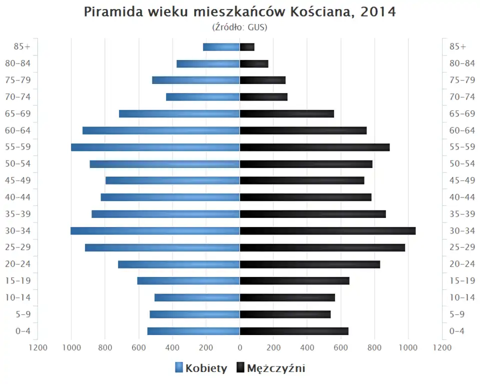 - Piramida wieku mieszkańców Kościana w 2014 roku[27].